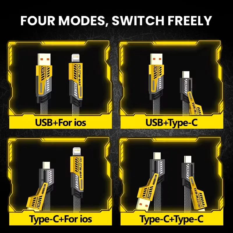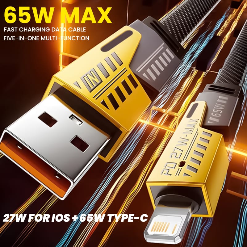 • 3-in-1 Fast Charging Cable – USB to Type-C, Micro USB, Lightning | 65W PD Quick Charger for All Devices